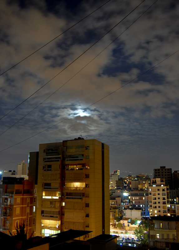I took this photo 2 days ago from my balcony, the moonlight was looking nice. The area showing is Ras El Nabeh.
