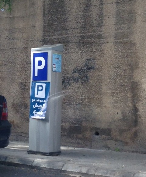 I’ve been noticing some traffic signs and parking meter machines around Achrafieh with stickers on them calling to take a stand with the Lebanese army.